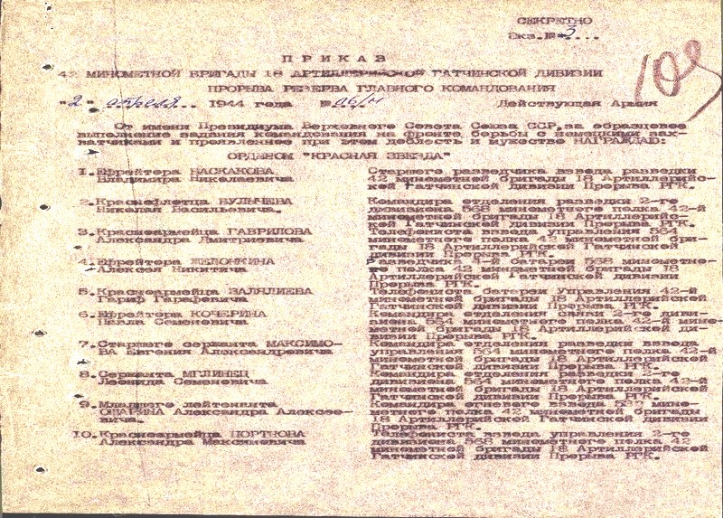 (Записи в журнале батареи Управления 42-й миномётной бригады 18 Артиллерийской Гатчинской дивизии Прерыва РГК. Описан Подвиг моего прадеда Залялиева Гарифа Гарафовича)